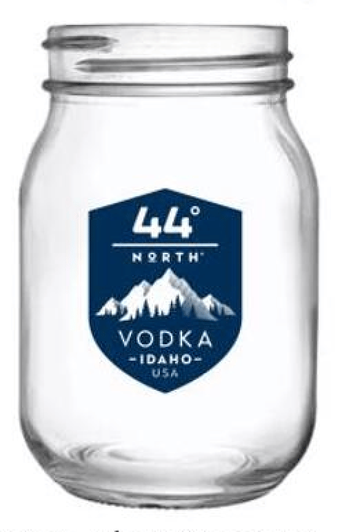 This is a custom designed 16-ounce mason jar complete with 44º North® branding. 44º North Shield on the front, farm to glass on the reverse. Sold as a set of 4.