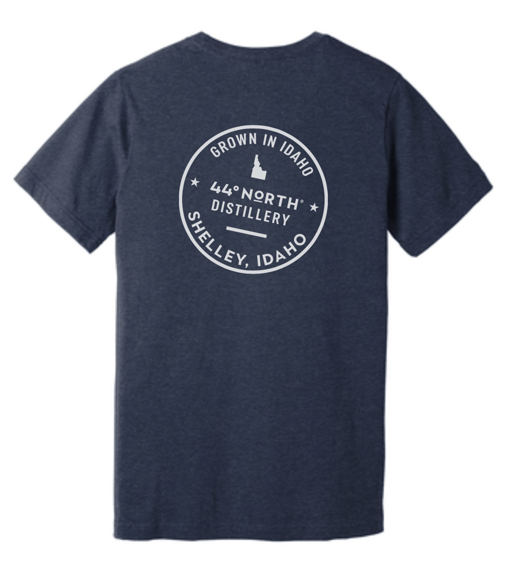 Unisex fitted Bella-Canvas 52% Cotton 48% Poly blend T-shirt with 44º North Vodka Hakuna Ma'Vodka + Distillery Logo in White on back.