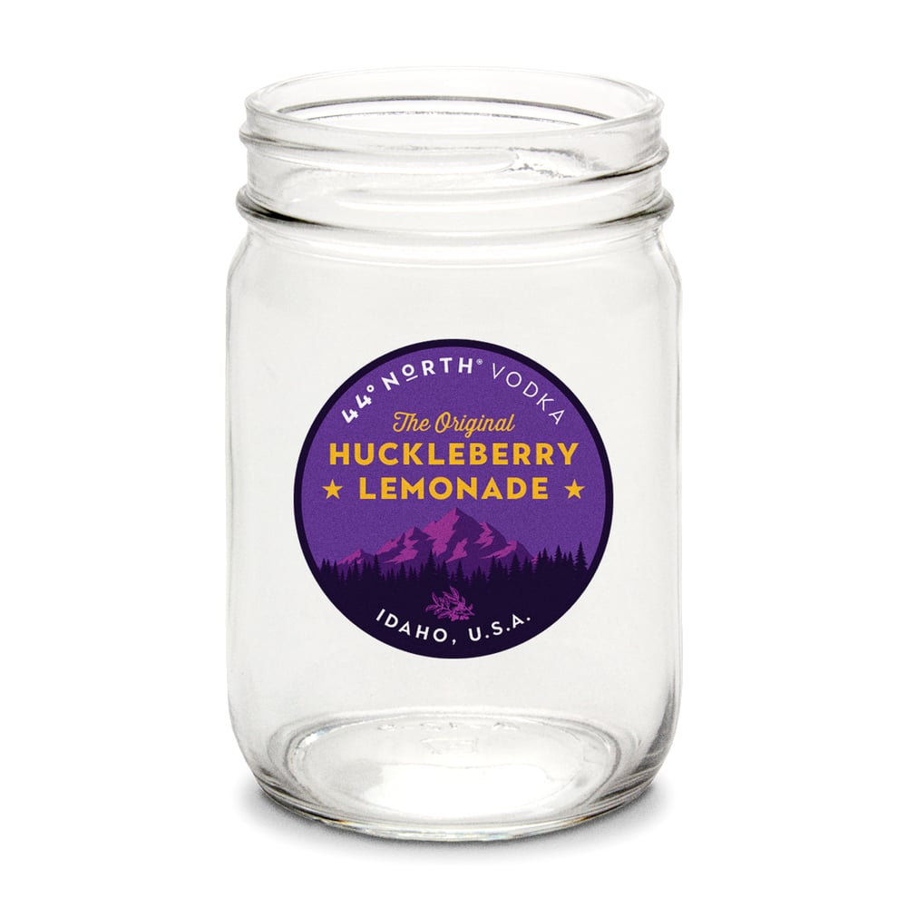 Your huckleberry lemonade doesn’t get any more backwoods than this. This is a custom designed 16-ounce mason jar complete with 44º North® branding. Huckleberry lemonade mark on the front, farm-to-glass on the reverse. Sold as a set of 4.